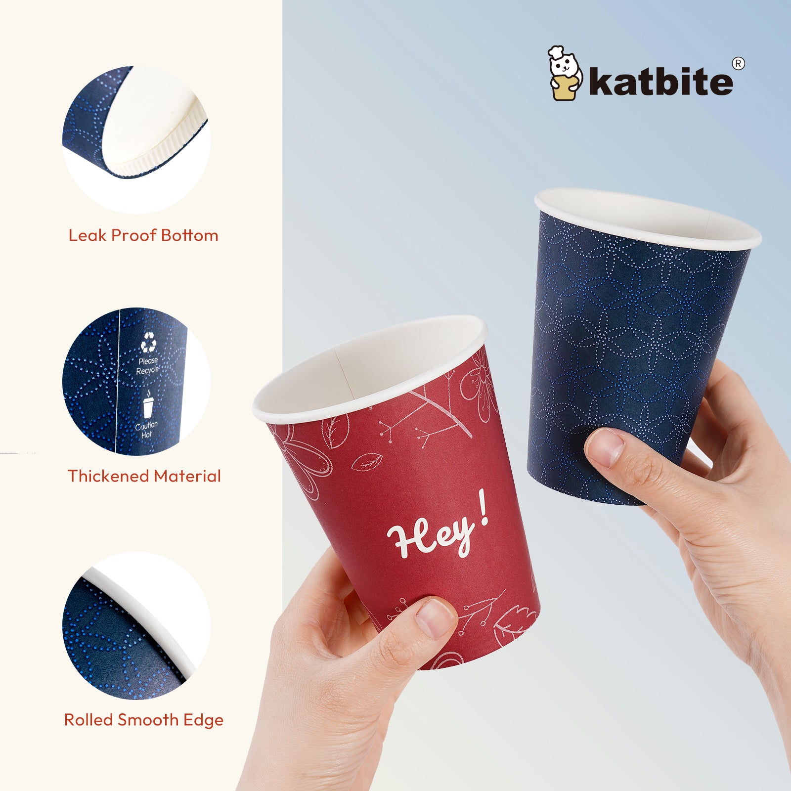 Katbite Biodegradable Paper Cups Red Letters and Blue Snowflakes