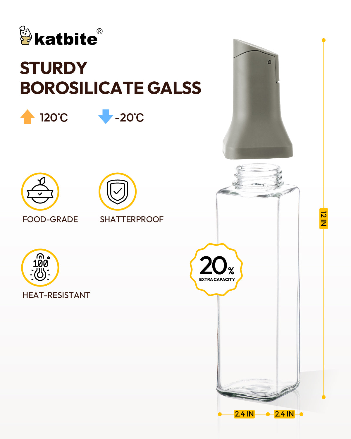 Katbite Olive Oil Dispenser Bottle Glass Gravity Spout Easy Refill